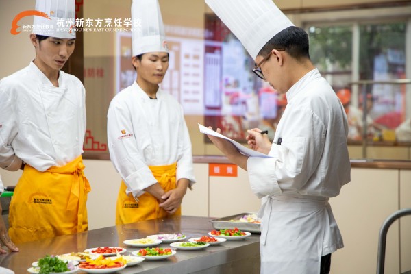 為確保教學質量,杭州新東方技工學校積極引進教學資源,聘請行業(yè)大廚、星級酒店廚師長為學?妥v師。
