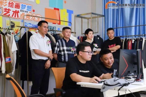 隨著校長(zhǎng)致辭結(jié)束,揭牌儀式也圓滿落幕。隨后,杭淘代表們與我校領(lǐng)導(dǎo)一同參觀專業(yè)直播教室,企業(yè)派出兩名直播達(dá)人進(jìn)行了服飾帶貨直播與娛樂(lè)才藝直播,讓我校學(xué)子們能夠直觀感受網(wǎng)絡(luò)直播行業(yè)的真實(shí)工作形式和內(nèi)容,同時(shí)也通過(guò)現(xiàn)場(chǎng)觀察,了解了兩種直播類型的具體差別。這樣的親身體驗(yàn)有助于他們學(xué)習(xí)直播的基本模式和技巧,激發(fā)同學(xué)們對(duì)投身直播行業(yè)的熱情。使他們?cè)诮窈蟮膶W(xué)習(xí)生活中明確自己需要提升和培養(yǎng)的能力,并在杭州新東方的課堂上為實(shí)現(xiàn)自己的夢(mèng)想注入力量。