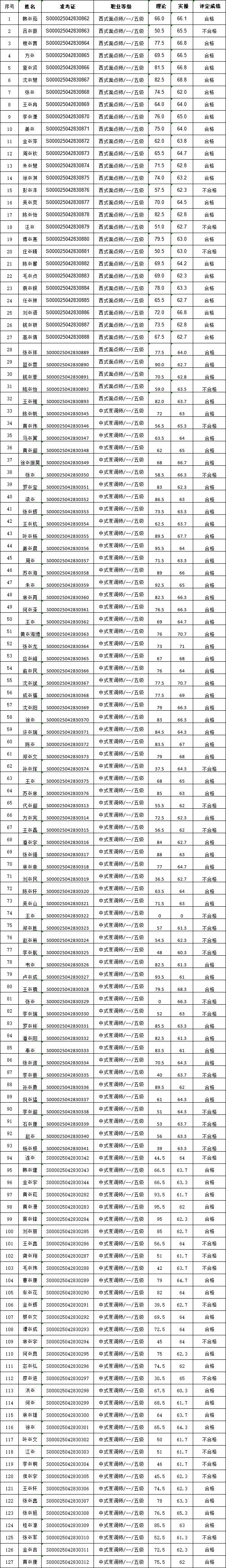 2025年5月24日杭州新東方烹飪學(xué)校職業(yè)技能等級認(rèn)定結(jié)果公示