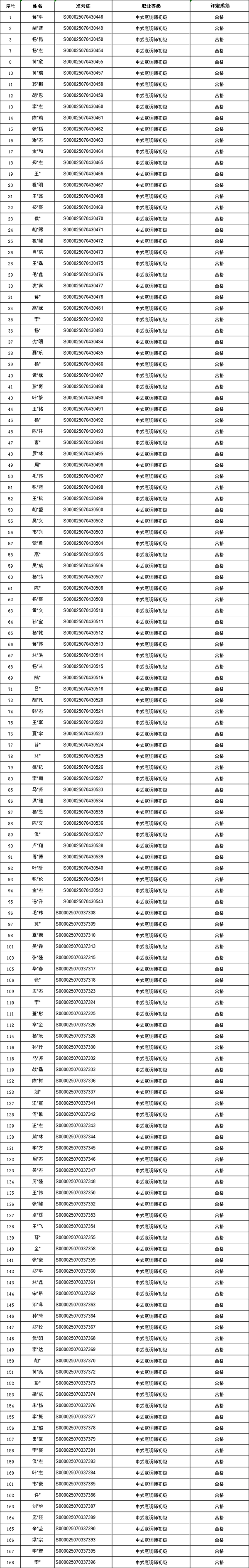 2025年7月26日杭州市余杭區(qū)新東方烹飪學校職業(yè)技能等級認定結果