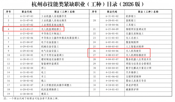 政策官宣!杭州2026年緊缺工種發(fā)布,無人機(jī)專業(yè)成技能成才黃金賽