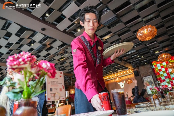 黎耀雄的職場起點(diǎn),是西餐后廚基礎(chǔ)工作。切配、備料,重復(fù)的工作看似枯燥,卻讓他扎實(shí)掌握了西餐實(shí)操技巧。入職三個(gè)月后,門店前場急需形象好、懂英文、通菜品的人員,綜合能力突出的他脫穎而出,從后廚走向前場。“慶幸在學(xué)校學(xué)了西餐英語,面對(duì)外國顧客能流暢溝通,校園里系統(tǒng)的西餐知識(shí)和扎實(shí)的基本功,都是我逆襲的底氣。”